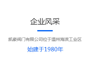 凱豪閥門有限公司位于溫州海濱工業(yè)區(qū),企業(yè)占地面積20000平方米。初建于 1985 年,注冊(cè)資金5008萬(wàn);工廠主要生產(chǎn) ANSL、JIS、DIN 和 GB 標(biāo)準(zhǔn)的閘閥、截止閥、止回閥、球閥、蝶閥、